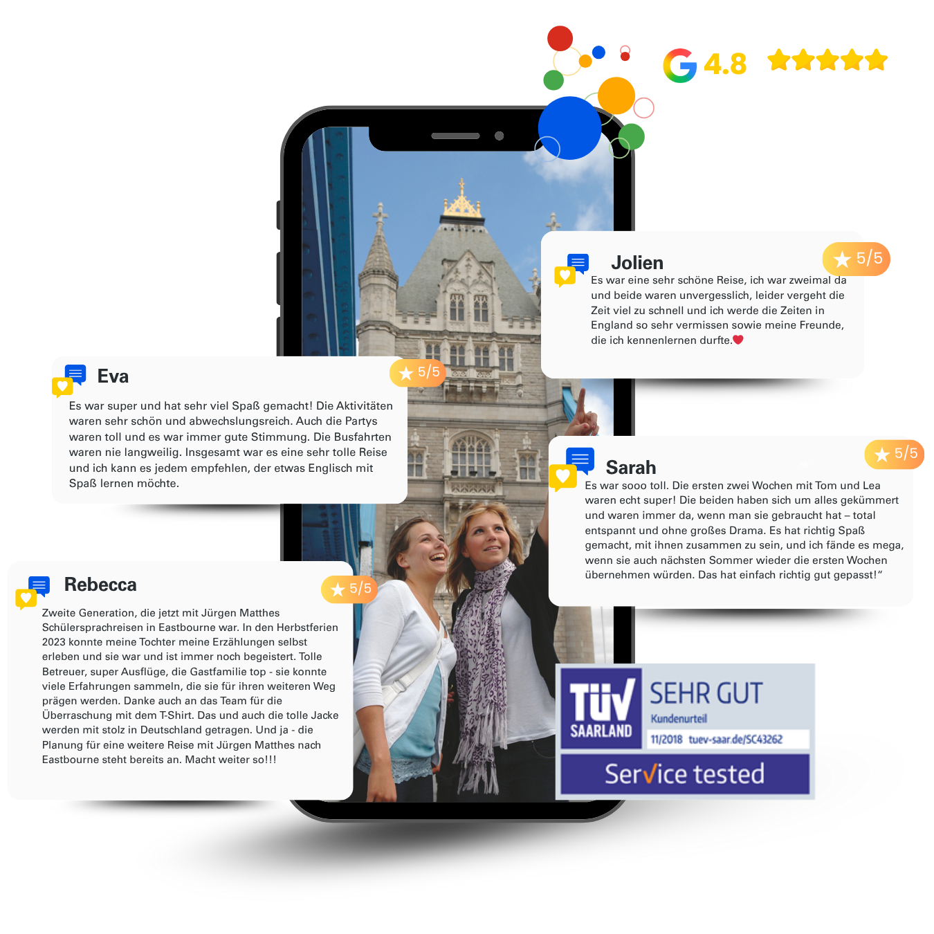 Jahr für Jahr fahren viele Schüler begeistert wiederholt mit uns nach England – mehr als 26.600 Familien haben ihre Kinder sogar mehrfach angemeldet. Dieses Vertrauen ist für uns die größte Auszeichnung.